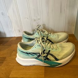 Bekväma löparskor från Asics i blått. Perfekt för löprundan eller promenaden. Skorna är i bra skick och redo för nya äventyr.