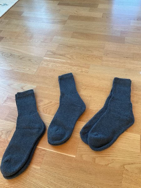 Tre par gråa strumpor
