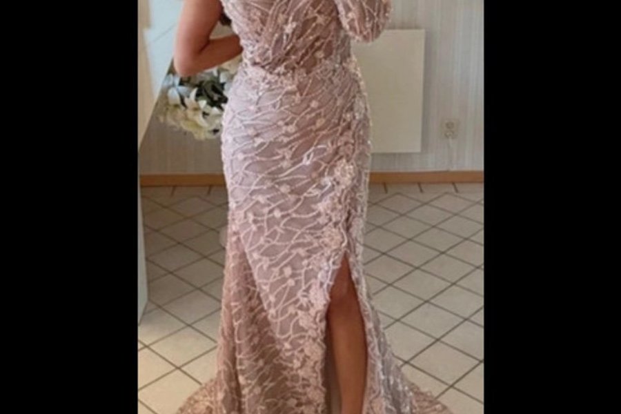 Vacker enarmad festklänning fylld med blommor och strass. Storlek (M) passar en 38/40. Klänningen är använt vid ett tillfälle och är i mycket fint skick.