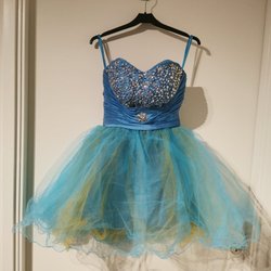 Vacker, hellång balklänning i en skimrande blå nyans. Klänningen glittrar i solljuset. Den sitter lite tajtare upp till , men passar bra för dig som är runt 170 cm lång och stl. L / xl. Klänningen är storlek 44 och av märket Lilly.