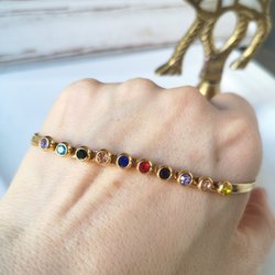 Ett par eleganta örhängen med färgade stenar i olika nyanser. Perfekt för att addera en touch av färg till din outfit.