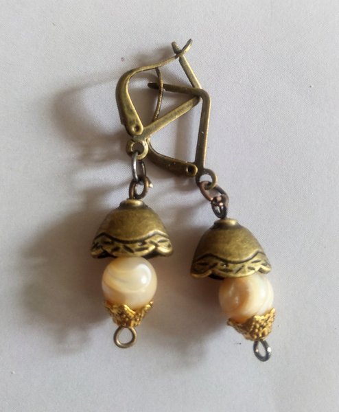 Örhängen med pärlomoder och bronz