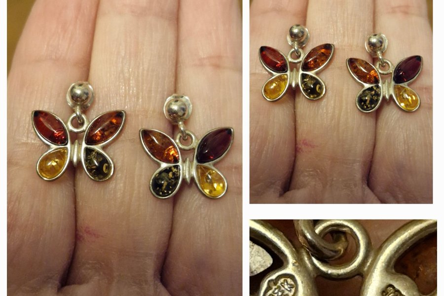 Silver örhängen med bärnsten