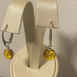 Ett par örhängen med bärnsten.
