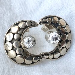 Örhängena är tillverkade i äkta silver. Det finns en tydlig kontrollstämpel med siffran 925 på både själva örhänget och på bakplattan, vilket intygar att det är sterlingsilver. De har en tvåfärgad design ("bicolor") där en del är guldpläterad för att ge kontrast mot det matta silvret. Örhängena är prydda med klara, fasettslipade stenar, om kubisk zirkonia.