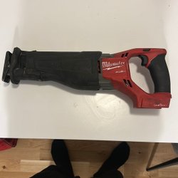 Borrhammare från Milwaukee. Verktyget är rött och svart med grå detaljer. M18 BH