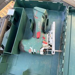 Fein nibbler för plåtbearbetning. Verktyget är designat för att klippa och forma metallplåtar. Den har en robust konstruktion och en ergonomisk design för enkel hantering.