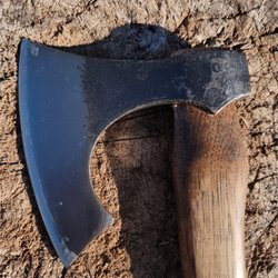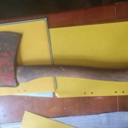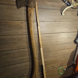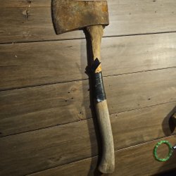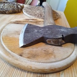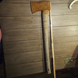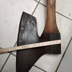 Fungerar att hugga ved med. Köpt på loppis säljer den vidare nu.