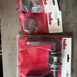 Två dörrhandtag i mattkrom rostfritt tror jag