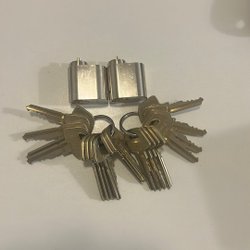 Diverse dörrhandtag och tillbehör från ASSA, hoppe mm. Inkluderar handtag, täckbrickor cylinder behör se bilder gör din bedömning .