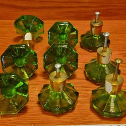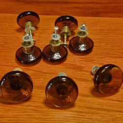Ett parti med olika beslag och handtag. Innehåller sex rektangulära mässingsplattor, tre kvadratiska glasbeslag, ett rektangulärt glasbeslag och ett vitt handtag i marmorimitation.se bilderna