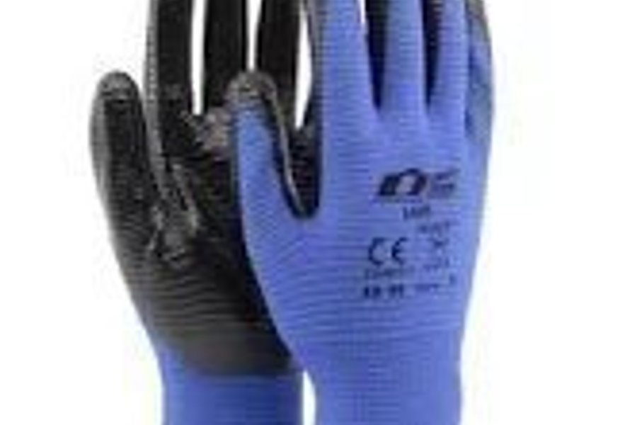 - Sömlös stickad handske i bambu/polyester som är doppad i nitril i innerhanden och över fingertopparna -