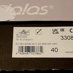 Säljer ett par Jalas skyddsskor. Skorna är svarta med gula detaljer och har snörning. Perfekt för arbete som kräver skyddsskor.storlek 42 . Dom är nya