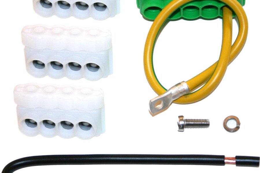 Kopplingssatsen består av 3 st fyrkopplingsplintar 4x25mm2 helt