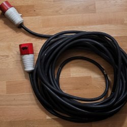 Förlängningskabel med röd kontakt. Ca 20m trefaskabel