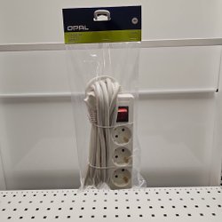 Grå förlängningskabel med stickkontakt och uttag.