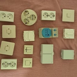 Ett eluttag från Schneider Electric, 2-polig jordad. Två strömbrytare från Make, strömbrytare kron.