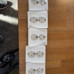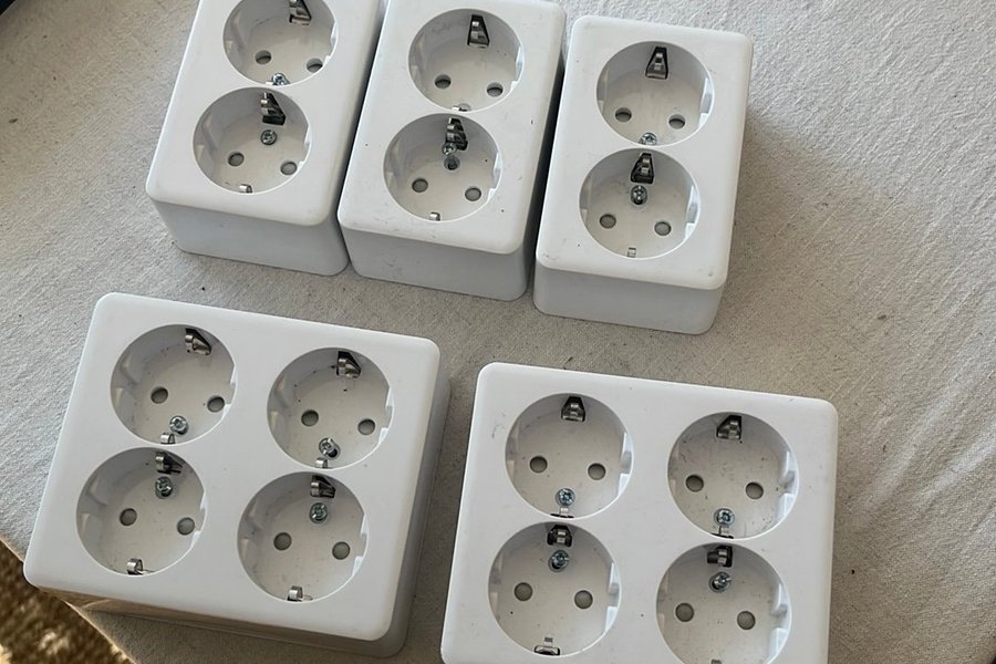 Vägguttag för elinstallationer. Dessa uttag är designade för att monteras på vägg och erbjuder flera anslutningspunkter för elektriska apparater. De är lämpliga för användning i hem- eller kontorsmiljöer.