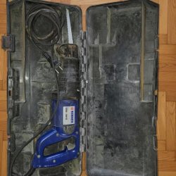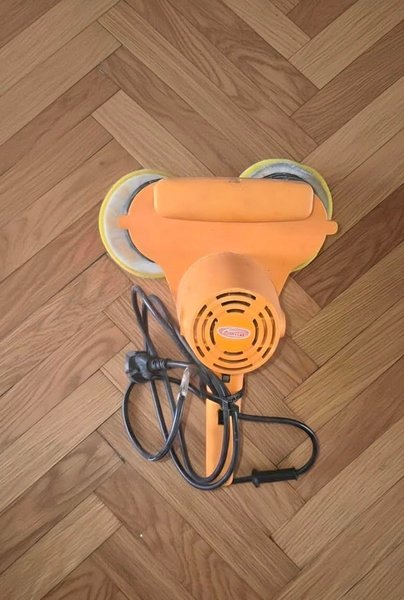Golvpolerare för att polera golvytor. Denna modell är orange och har en svart elkabel.