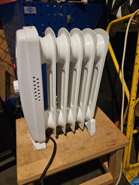 Oljefyllt element med justerbar termostat. Elementet har en indikatorlampa som lyser när det är igång. Kompakt design för enkel placering.