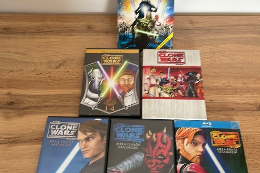 Samling av Star Wars: Clone Wars filmer och säsonger. Inkluderar Clone Wars filmen på VHS, säsongerna 1-4 på DVD, samt säsongerna 3, 5 och 6 på DVD och Blu-ray.