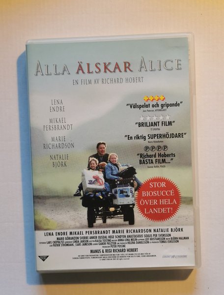 DVD-skiva med filmen Alla Älskar Alice av Richard Hobert. Medverkande: Lena Endre, Mikael Persbrandt, Marie Richardson, Natalie Björk. Filmen fick mycket positiva recensioner.