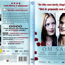 Filmen "Om Sara" på DVD. Filmen är från 2005 och har en speltid på 1 timme och 24 minuter. Ljudspår på svenska (5.1 Dolby Digital) och textning på svenska (2.0). Textning för hörselskadade finns på engelska. Extramaterial inkluderar trailers, bakomfilm, bortklippta scener, kommentarspår och bildspel.