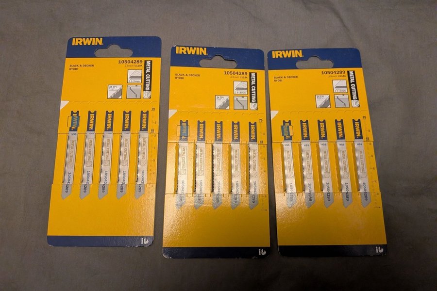 Tre förpackningar IRWIN metallsågklingor. Passar Black & Decker, Ryobi och Bosch U118A.