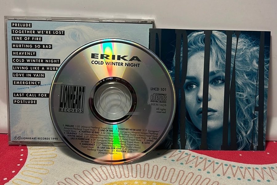 CD-skiva med Erika - Cold Winter Night. Utgiven av Lionheart Records 1990.