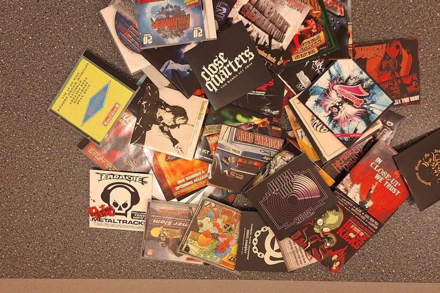 Ett parti med olika CD-skivor och samlingar, inklusive "Roadrunner United", "Metal Hammer" och "Close-Up Magazine" samlingsskivor. Innehåller även skivor från "Earache Records" och "Sweden Rock".