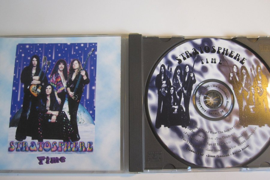CD-albumet "Time" av Stratosphere. Skivan innehåller 10 låtar, bland annat "I Wear The Scars", "Too Tired" och "Keep Control". Producerad av Steve Plunkett och Aeriel Stibes.