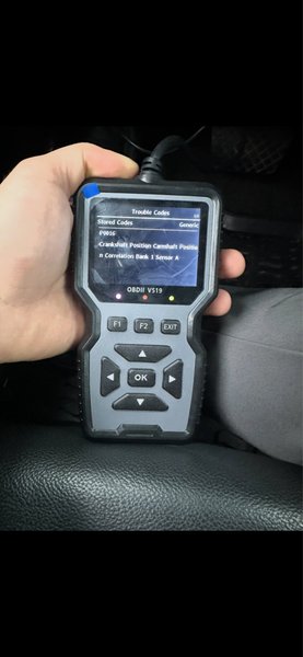 OBDII V519 är ett fordonsdiagnostikverktyg som visar felkoder. Verktyget har knappar för F1, F2, EXIT samt navigeringsknappar och en OK-knapp.