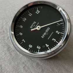 En Smiths varvräknare säljes. Perfekt för veteranbilar och andra fordon. Unik då den går till 10 000 RPM. Tillverkad i Storbritannien. Fästbygel medföljer, muttrar saknas.