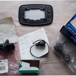 Olika bildelar och tillbehör som alla troligen är oanvända / omonterade.