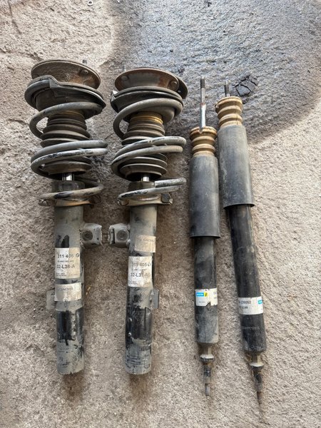 Stötdämpare i märke bilstein och sachs. Topplagringarna är helt okej. Fjädrarna är kapade så dem behövs bytas ut. Finns i Enköping