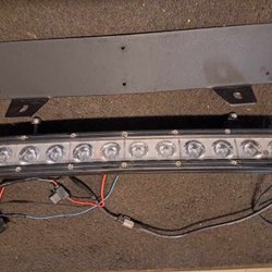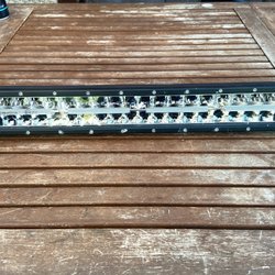 Ledramp säljes, fjärrljus i mitten och bred ljusbild på sidorna. Hämtas på plats och betalas med Swish. Det ser ut som den lyser på bilden, det är blixten som reflekteras.