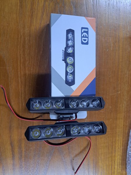 Två stycken LED-extraljusramper, vardera med sex individuella LED-lampor. Dessa ramper är designade för att ge extra belysning och kan monteras på olika fordon. De har en robust konstruktion och är försedda med kablar för enkel anslutning.
