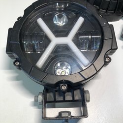 LED-extraljus med tre runda LED-lampor, lyser riktigt bra. Varje lampa har en diameter på cirka 22 cm. Stag och regplåtshållare medföljer. Se bilder.