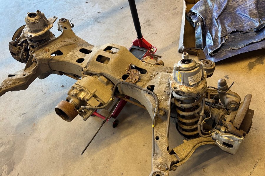 Bakaxel med bromsar och stötdämpare från en XC70 2003. Inkluderar differential och drivaxlar och haldex. Allt fungerar som det ska.