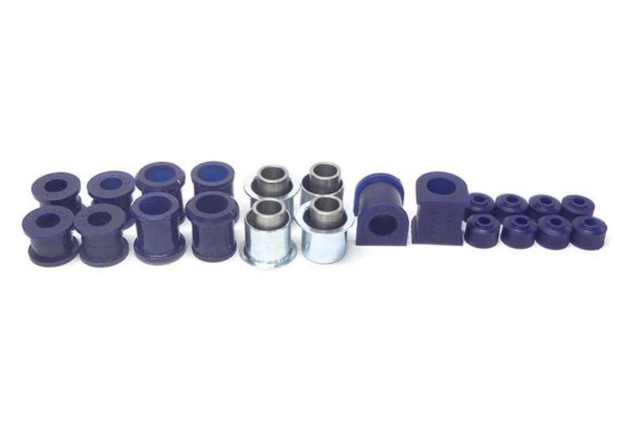 Ett kit med de bussningar som finns fram i uretan till alla* Amazon/P1800 För gata & sport Framvagn: SF033 x 4 övre länkarm SF675SK x 4 nedre länkarm SF125 x 8 stabilisatorstag SF1450-22 x 2 krängningshämmare (ej hjälpstyrarm) * Amazon/P1800 -61 har 4 x SF033 istället för SF675SK/SF675