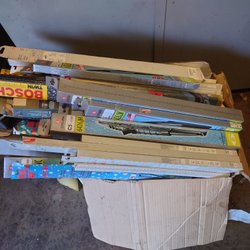 Liten lot ed torkarblad till äldre bilar, Rainbow, Tex, SWF... Det längsta mäter C:a. 35 cm. Huvudsakligen Engelska. BMC Ford GM