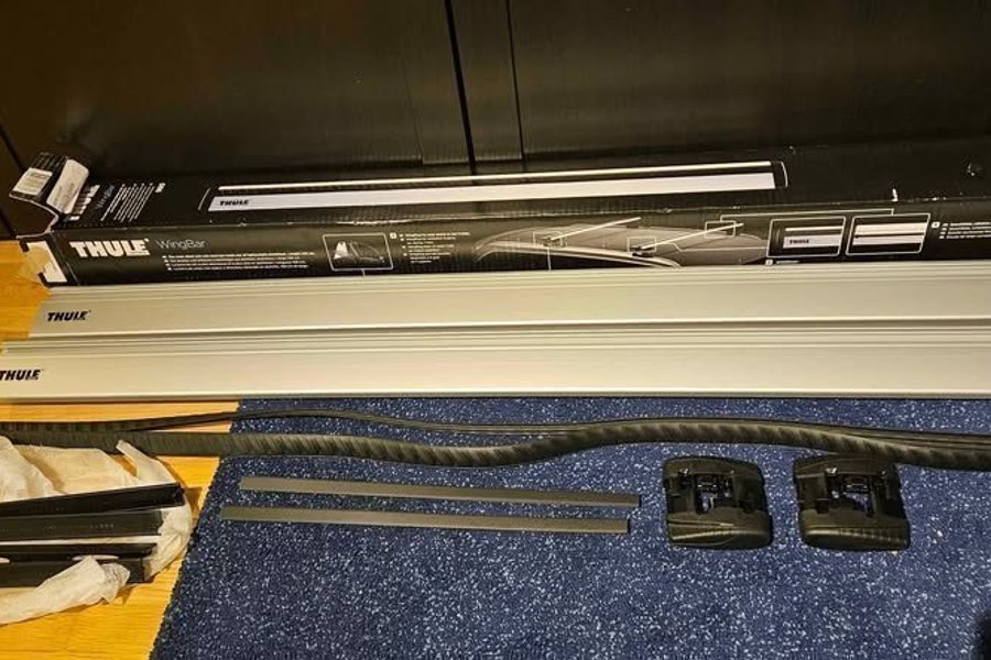 Helt nya Thule Wingbar 960 108cm i original förpackning, endast uppackat för fotografering. Kostar ca 1200kr för nya i butik/på nätet. Enbart rör. Fotsats och fixeringskit följer inte med.