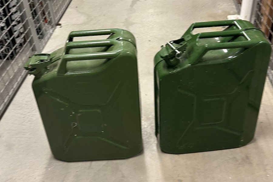 Två gröna bensindunkar