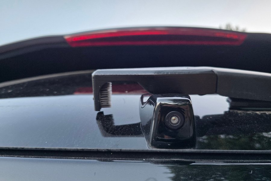 Ett specialtillverkat fäste som du sätter bak vid vindrutetorkarna för att se till att backkameran alltid är ren och fin.