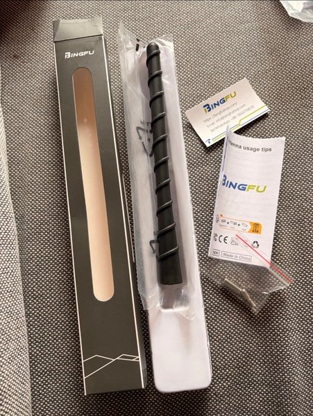 BINGFU bilantenn, tillverkad i Kina. Antennen levereras med tillbehör för montering.