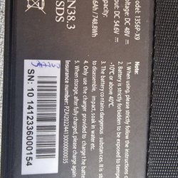 Laddaren har en utgång på 54.6V och 2.0A, med en maximal effekt på 110W. Den är kompatibel med AC110-240V, 50-60Hz strömförsörjning. Laddaren är av modell 48V2A och