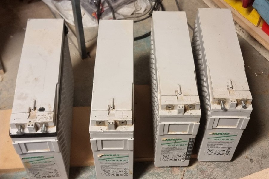 Fyra stycken Marathon M12V100FT batterier.