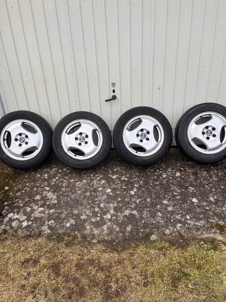 4 originalfälgar Saab 15tum. Däcken är slitna och används på egen risk!185/65/15 3 st Michelin och 1st nexen. Sommardäck! Ca 2-4mm obs endast hämtning!!