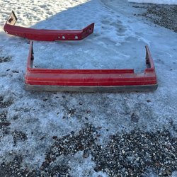 1 saknar den röda färgen , finns bulor och repor , 1 har en spricka , insidan på ena har börjat släppa ca 18cm .