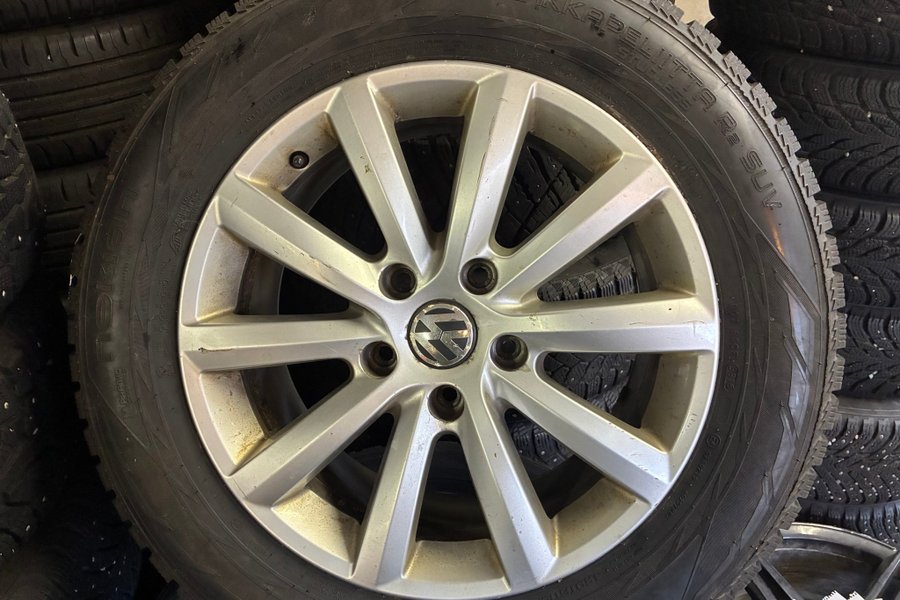 Vw fälgar med Nokian hakka 225/55-18 friktionsdäck minst 6mm kvar. Suttit på en Vw Toureg -16